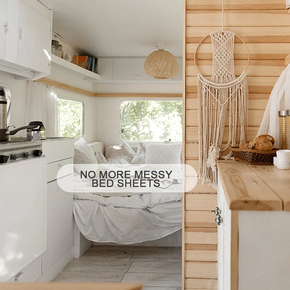 RVs and Tiny Homes are amazing—but they aren’t always easy to navigate. Making the bed in a small space is hard, and since many RV and Tiny Home owners rely on transforming furniture, simplifying chores is important. With our semi-fitted top sheets, you can make the bed quickly and comfortably without banging your elbows. Start your morning smiling, not frustrated!